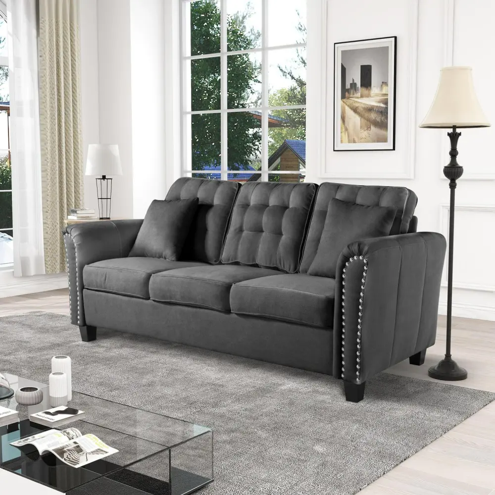 BSHTI 86.6 inch Morden Flare Arm Sofa,Upholstered Design Futon Sofa for Livingroom(Black)