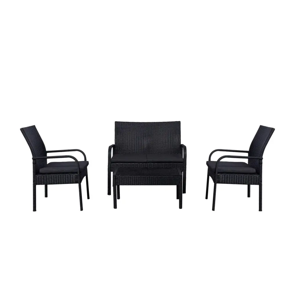 4-Piece Outdoor Patio Modern Sofa Conversation Set, Black/Gray