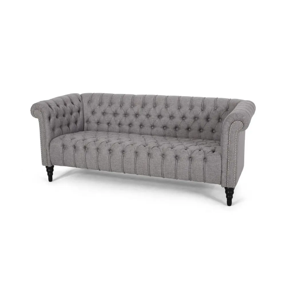 Noble House Slate Fabric Tufted 3 Seater Sofa, Grey
