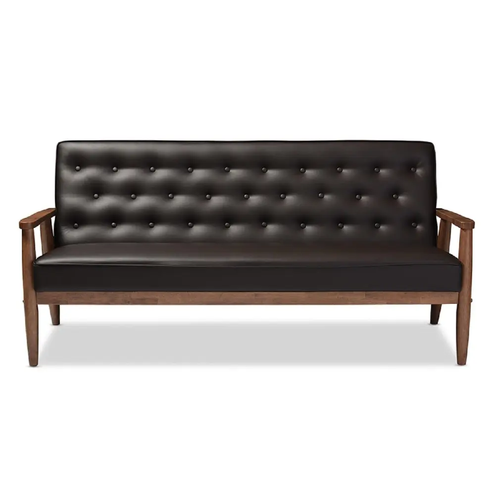 Baxton Studio Sorrento Mid-century Retro Modern Brown Faux Leather Upholstered Wooden 3-seater Sofa