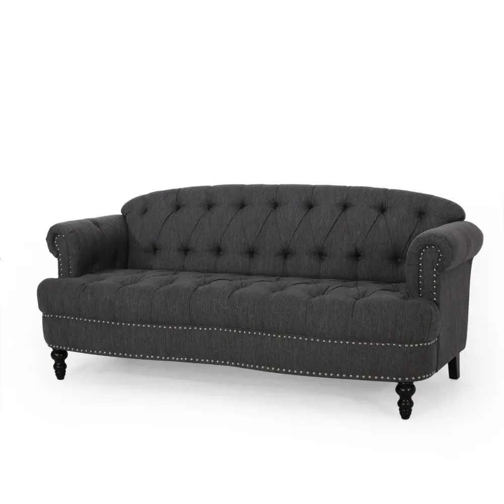 Noble House Taaliah Contemporary Tufted 3 Seater Fabric Sofa, Charcoal