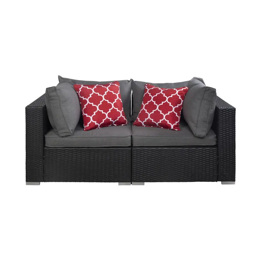 Outdoor Patio Rattan Wicker Conner Sofa with Back Pillows (Set of 2), Espresso/Gray