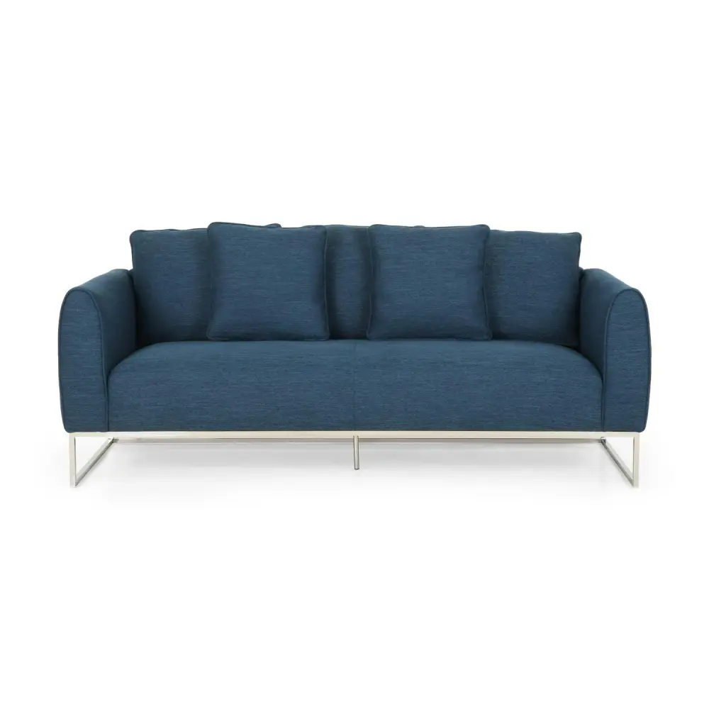 Noble House Milan Fabric 3 Seater Sofa with Pillows, Navy Blue