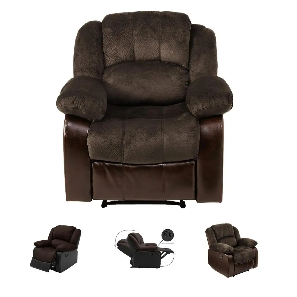 Nathaniel Home, Manual Single Reclining Sofa, Champion PU Leather Upholstered Couch, Tufted Recliner, Plush Scoop Seating, for Living Room Home Theater, Brown