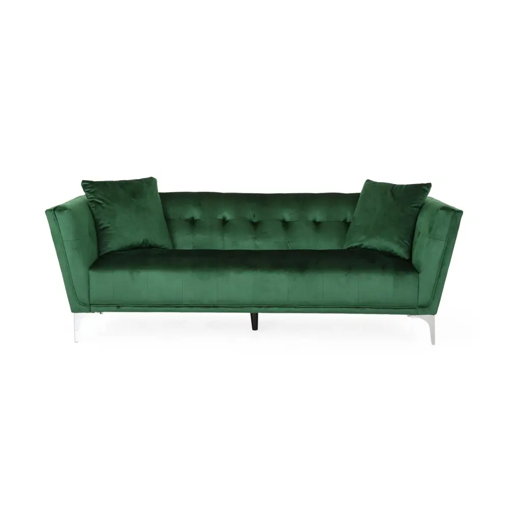 Noble House Emilio Velvet Sofa, Emerald, Silver