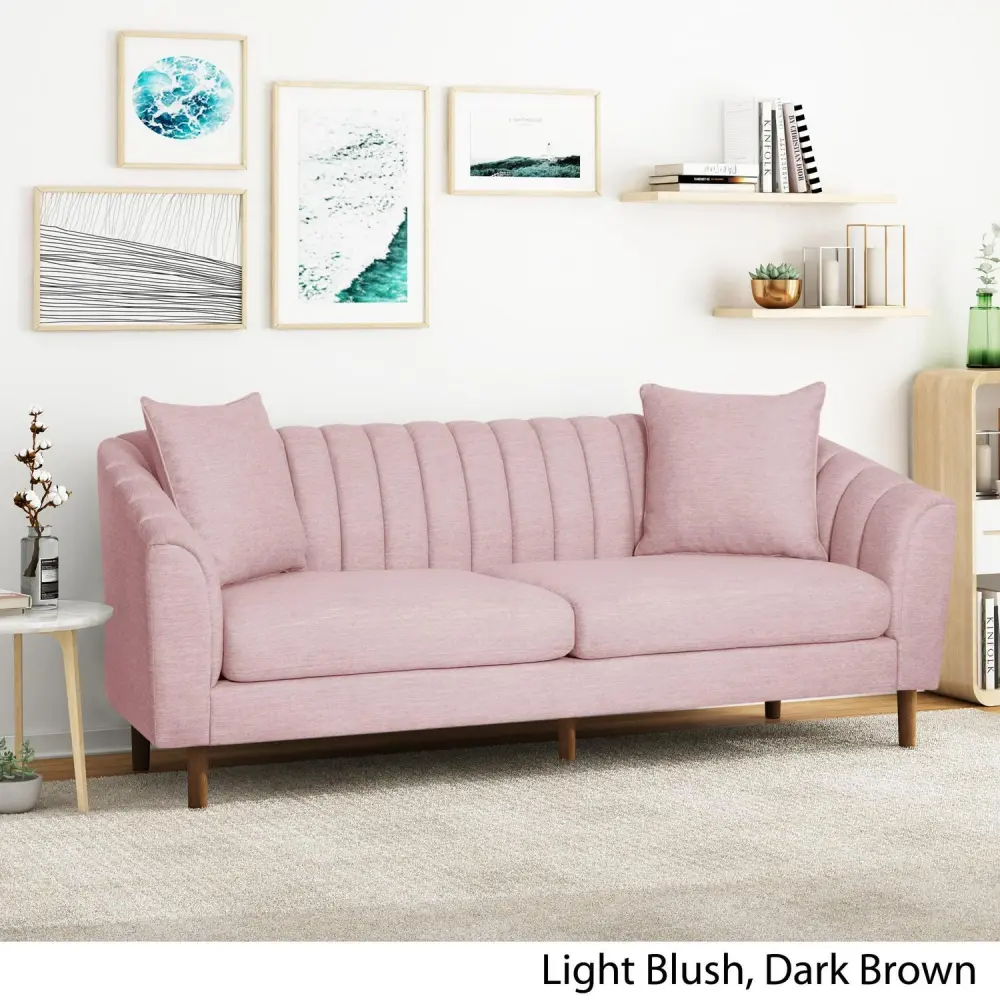 Noble House Orly Tufted 3 Seater Fabric Sofa, Light Blush