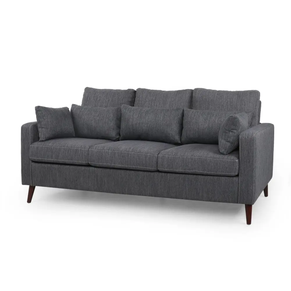 Noble House Jozey Contemporary 3 Seater Fabric Sofa, Charcoal, Espresso
