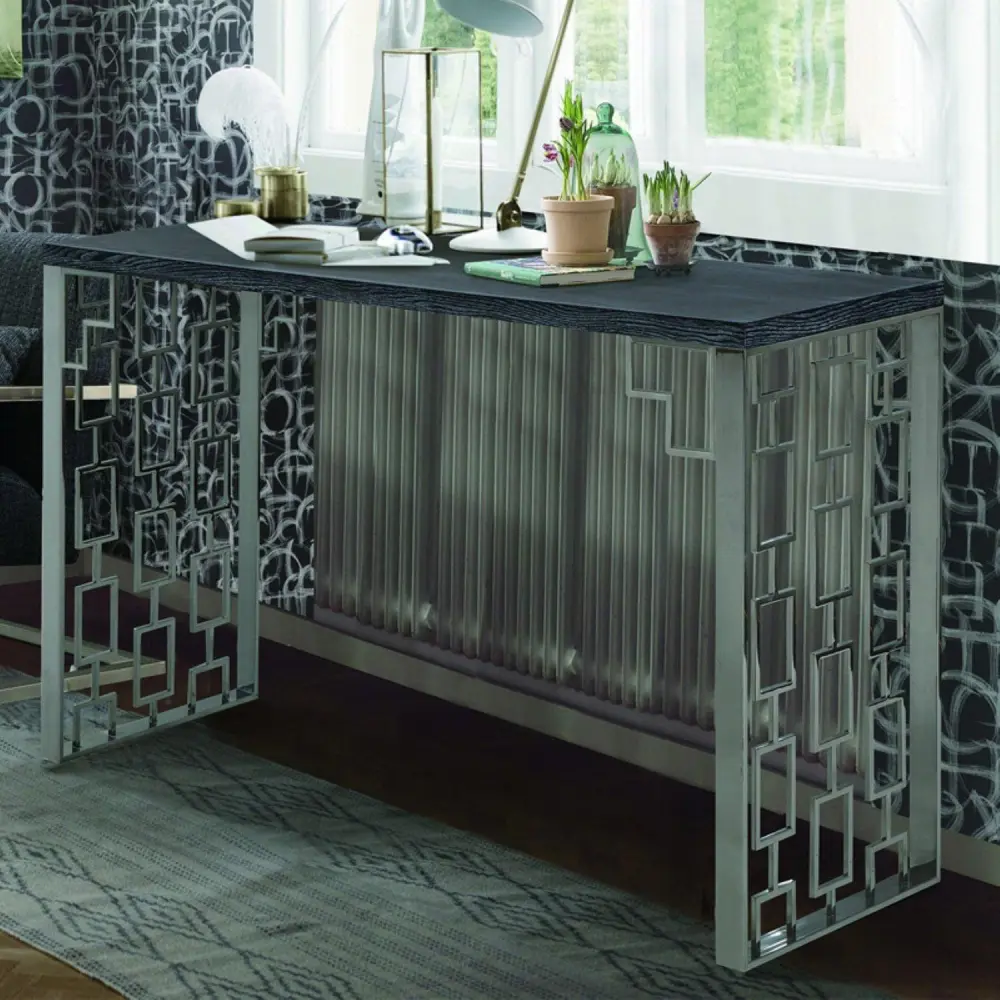 Armen Living Skyline Charcoal Gray Wood and Stainless Steel Entry Way Sofa Console Table