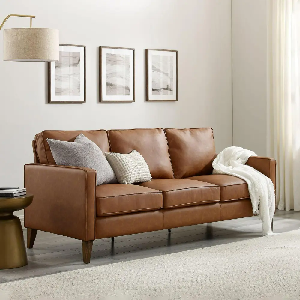 Hillsdale Jianna Faux Leather Sofa, Saddle Brown