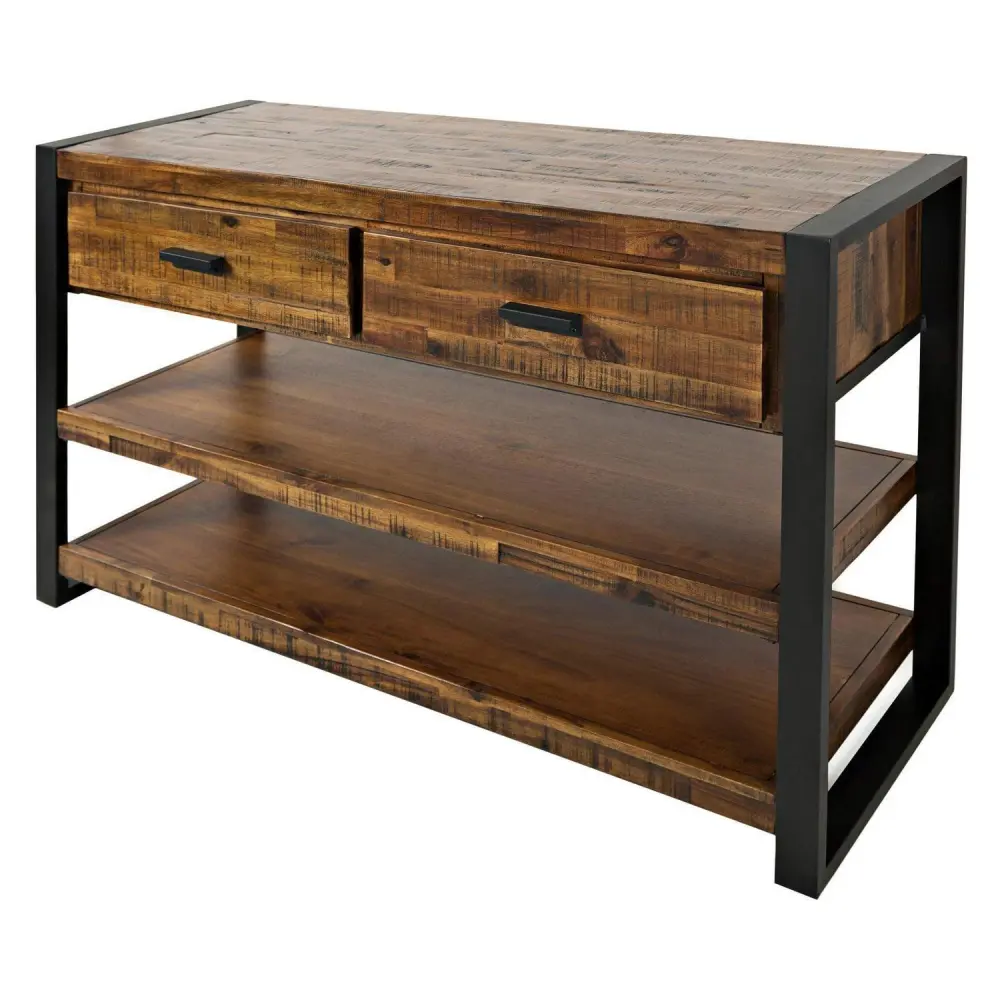 Jofran Loftworks Modern Industrial Distressed Acacia 50 Sofa Table with Drawers