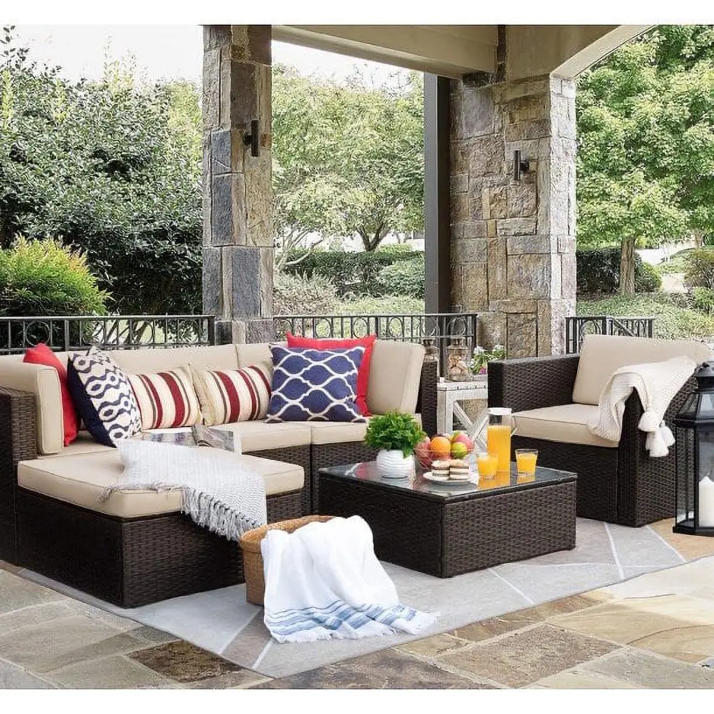 Lacoo 6 Pieces Patio Indoor Furniture Set Outdoor Sectional Sofa Outdoor Furniture, Beige, Sectional Sets, 2, Steel