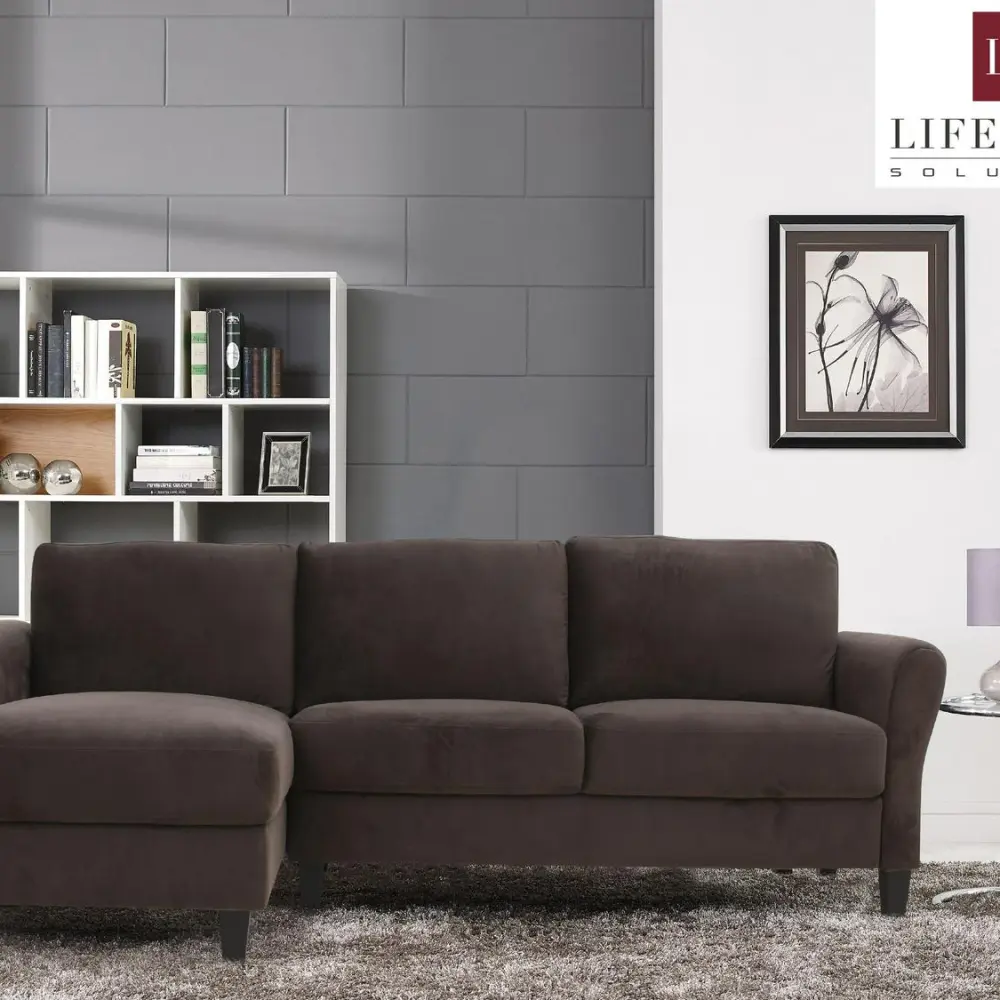 Lifestyle Solutions Alexa Sectional Sofa with Curved Arms, Coffee Brown Fabric