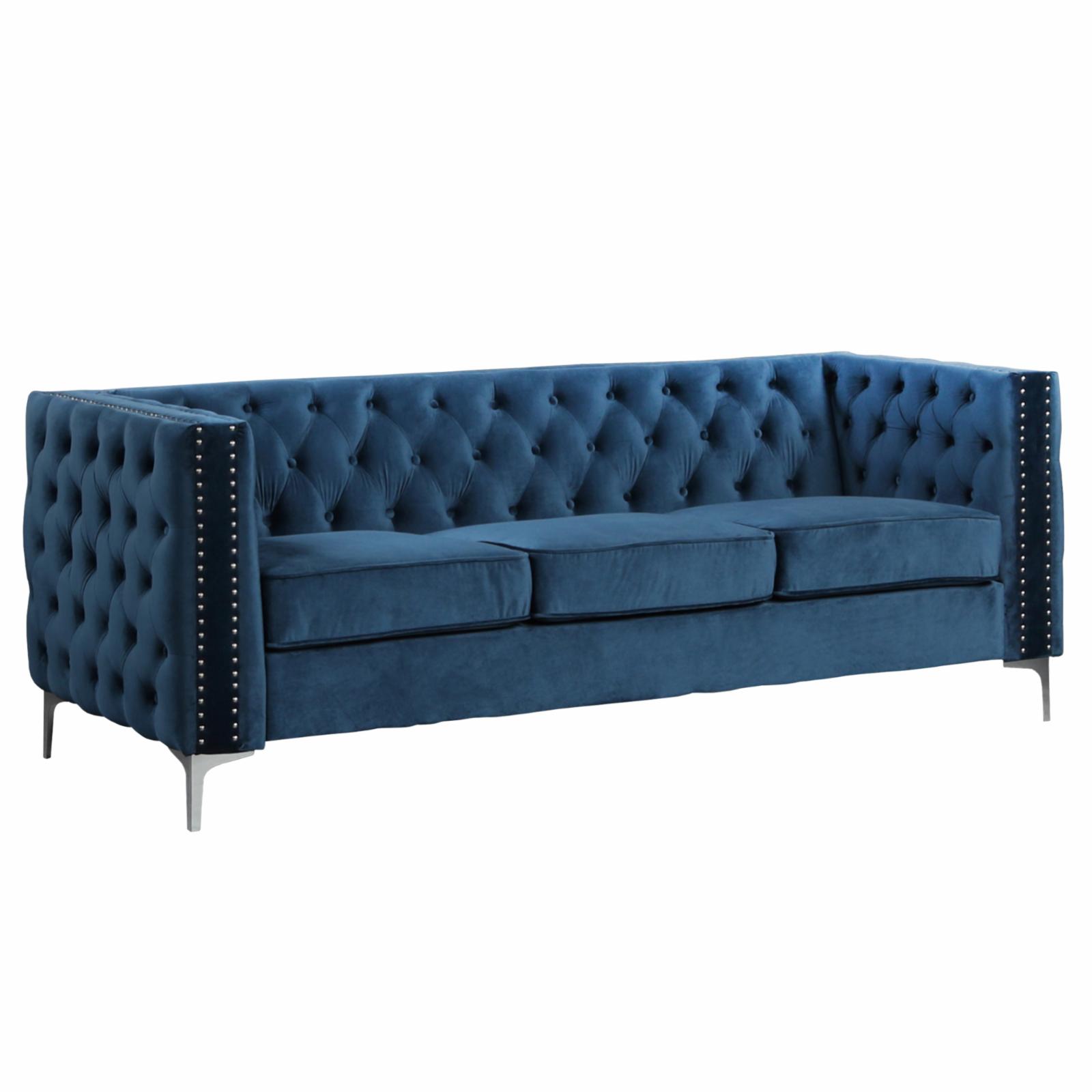 Best Master Furniture Aineias 84" Tufted Transitional Fabric Sofa in Navy