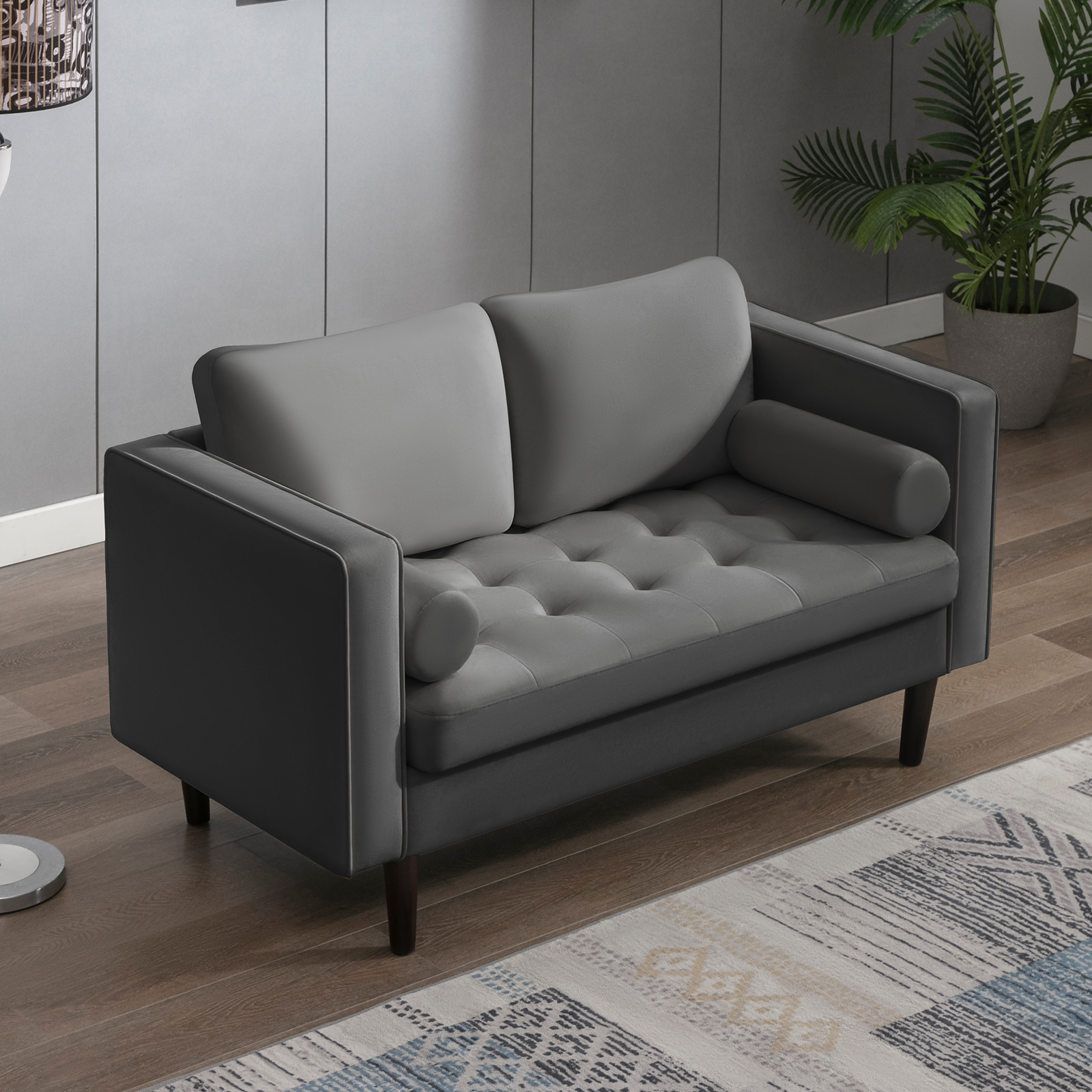 BALUS Loveseat Sofa with Cushions, Modern Tufted Sectional Couch for Living Room, Dark Gray