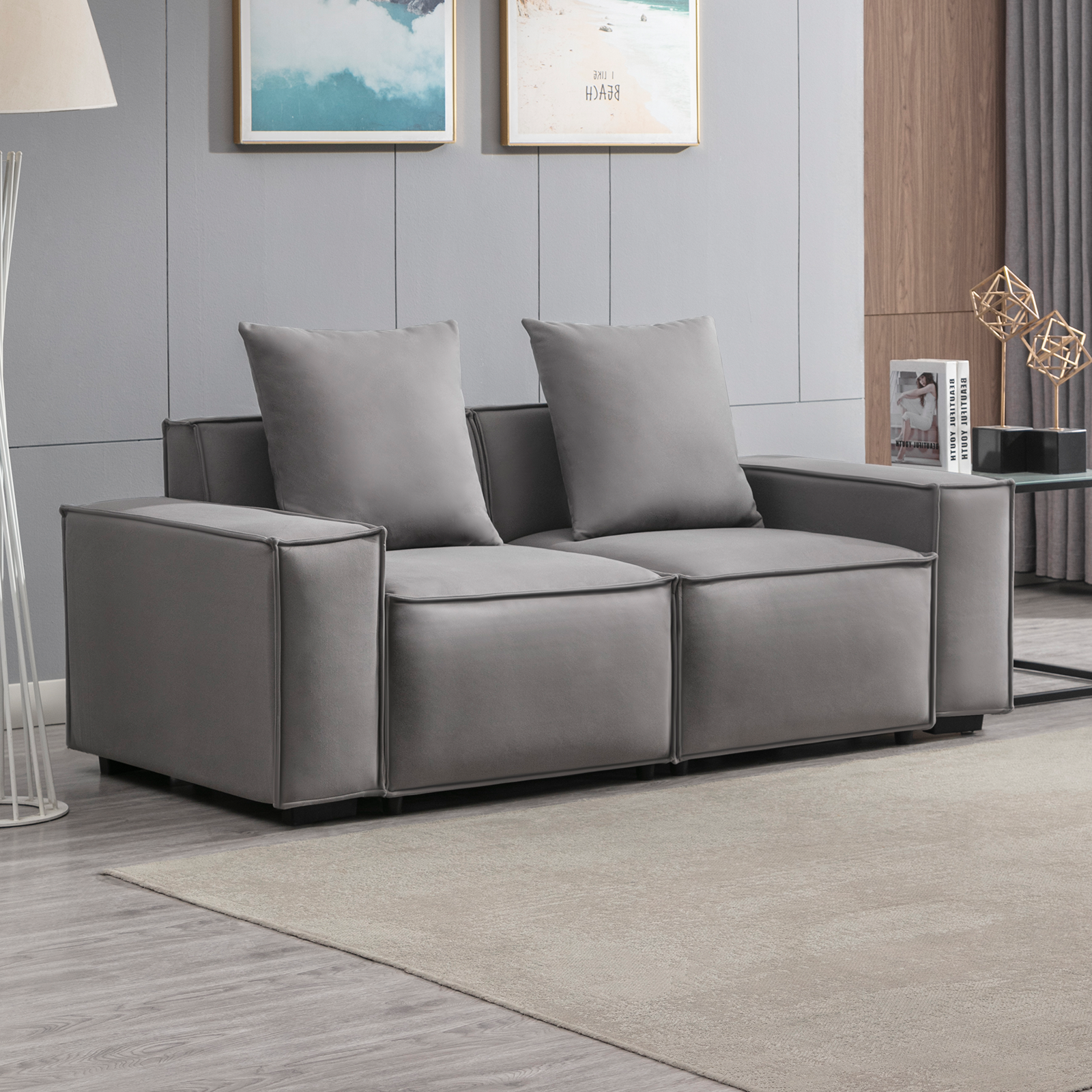 ZAFLY Loveseat Sofas for Living Room, Upholstered 2 Seater Love Seats,88" W Modern Couch for Apartment and Small Space, Loveseat Furniture with 5.9" Thicken Cushion (Light Grey, 2 pcs)