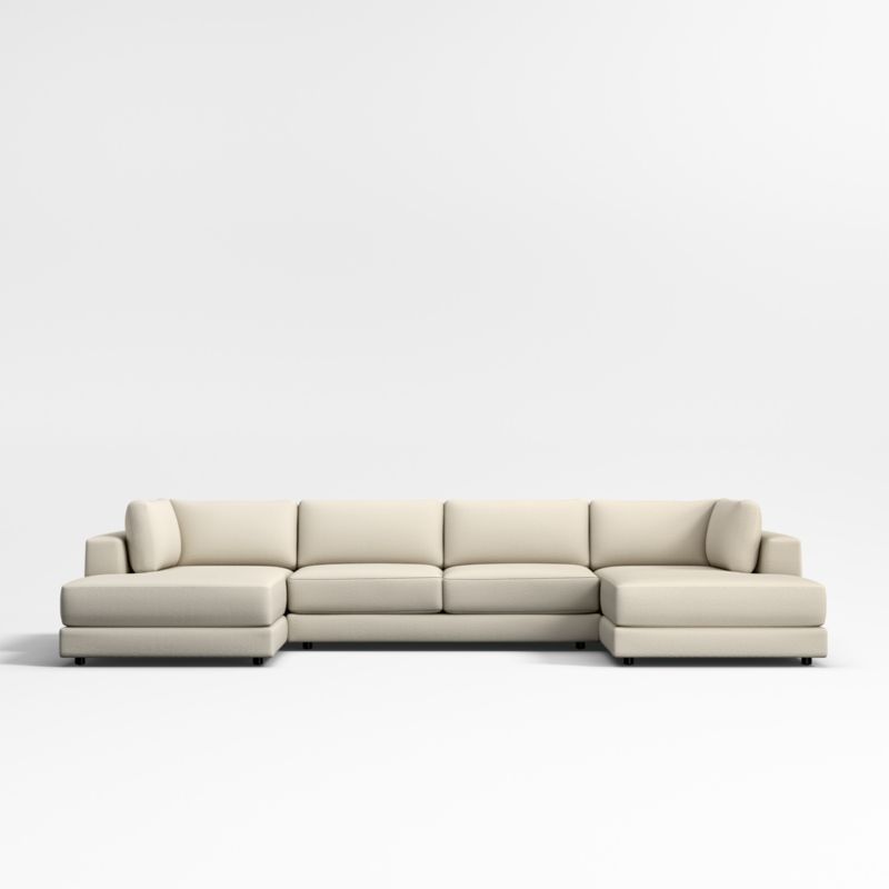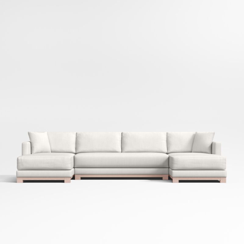 Gather Deep Wood Base Bench 3-Piece Double-Chaise Sectional Sofa