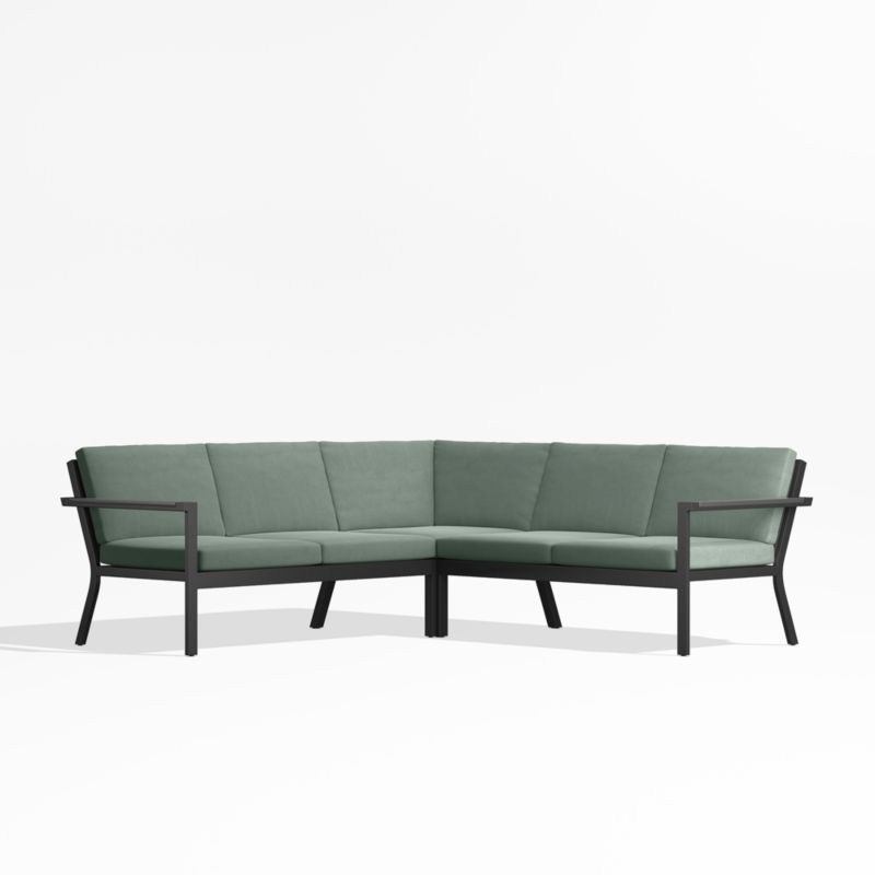 Alfresco Black Metal 3-Piece L-Shaped Outdoor Sectional Sofa with Sage Green Sunbrella Cushions