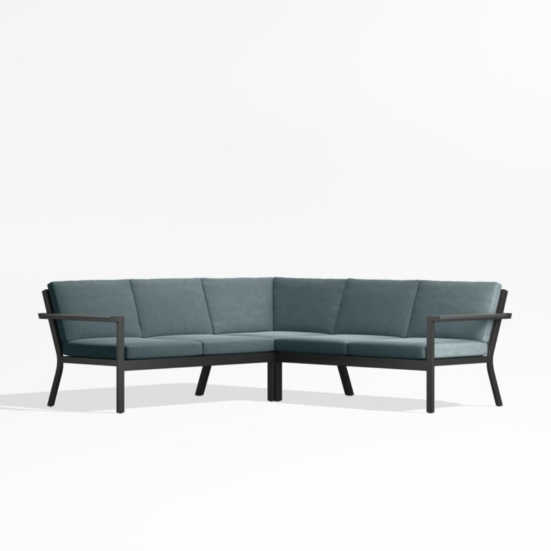 Alfresco Black Metal 3-Piece L-Shaped Outdoor Sectional Sofa with Spa Blue Sunbrella Cushions
