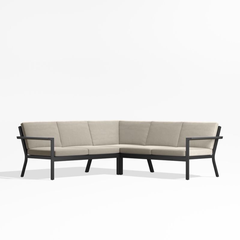Alfresco Black Metal 3-Piece L-Shaped Outdoor Sectional Sofa with Flax Beige Sunbrella ® Cushions