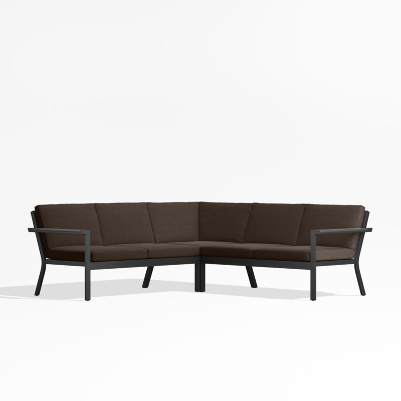 Alfresco Black Metal 3-Piece L-Shaped Outdoor Sectional Sofa with Java Brown Sunbrella Cushions