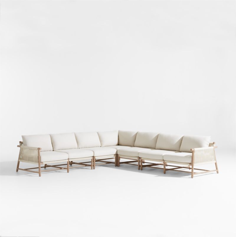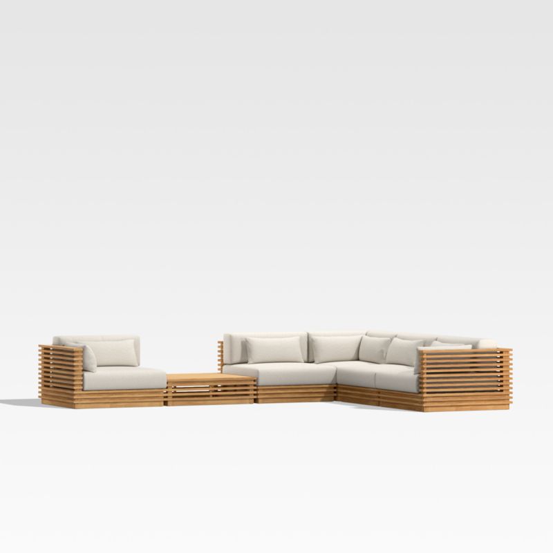 Batten 6-Piece L-Shaped Teak Outdoor Sectional Sofa with Side Coffee Table & Oat Cushions