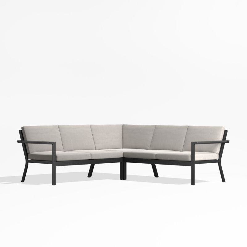 Alfresco Metal 3-Piece L-Shaped Outdoor Sectional Sofa with Silver Sunbrella® Cushions