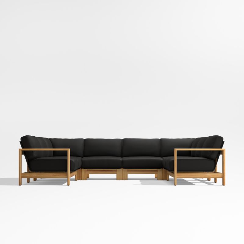 Anguilla Teak 6-Piece U-Shaped Outdoor Sectional Sofa with Black Cushions