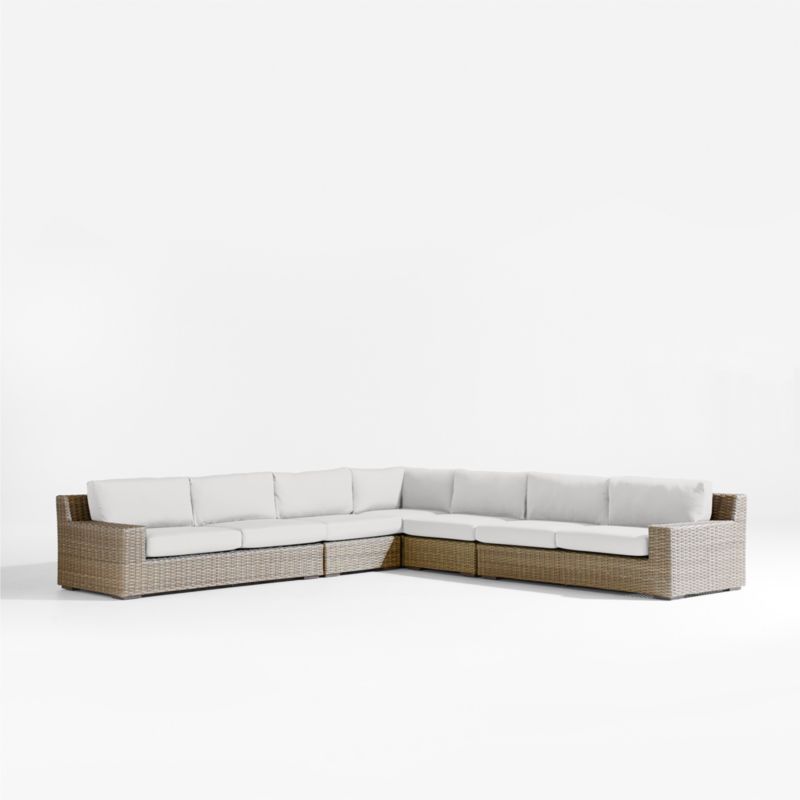 Abaco Resin Wicker 5-Piece L-Shaped Outdoor Sectional Sofa with White Sand Sunbrella ® Cushions