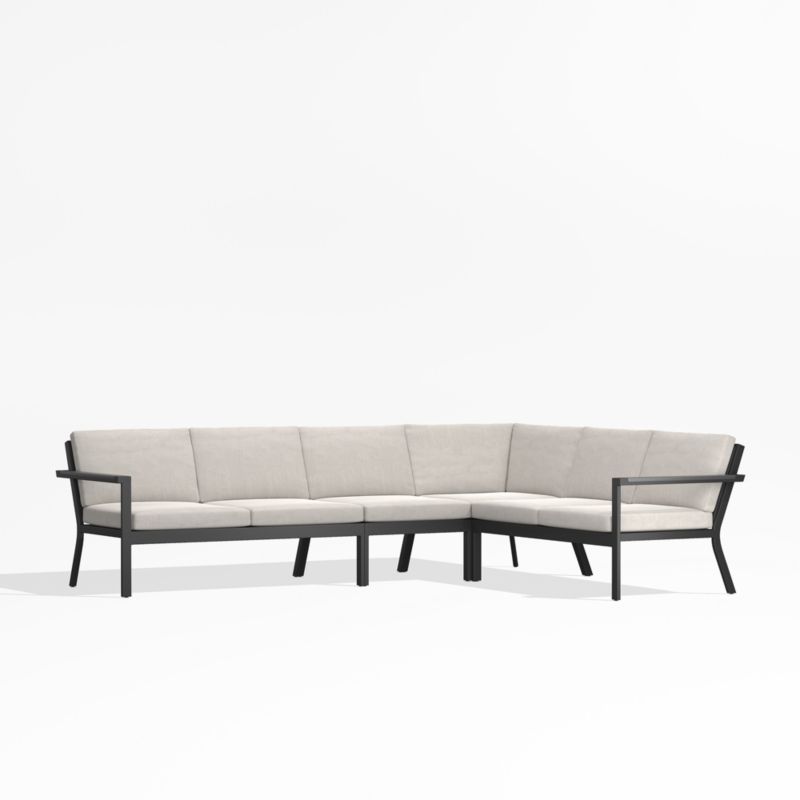 Alfresco Metal 4-Piece Petite L-Shaped Outdoor Sectional Sofa with Silver Sunbrella® Cushions