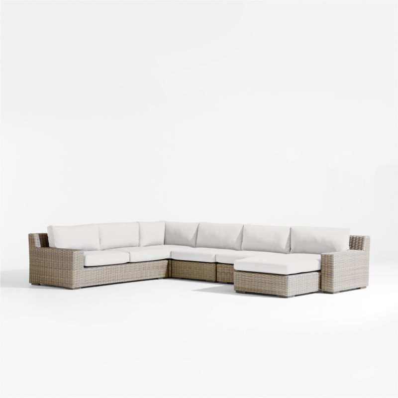 Abaco Resin Wicker 5-Piece Right-Arm Chaise Outdoor Sectional Sofa with White Sand Sunbrella ® Cushions