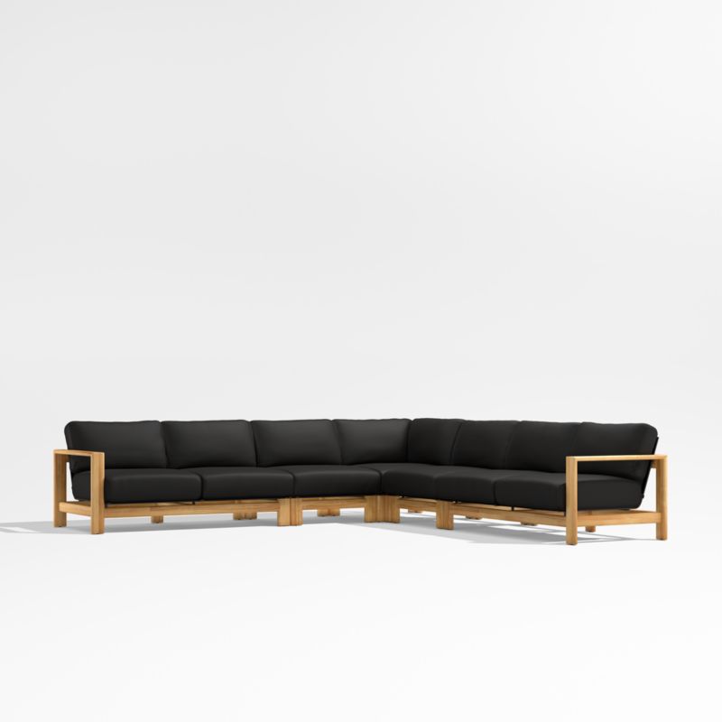 Anguilla Teak 5-Piece L-Shaped Outdoor Sectional Sofa with Black Cushions