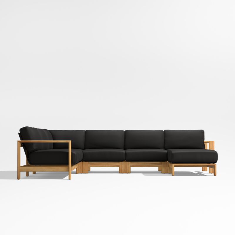Anguilla Teak 5-Piece Right-Arm Chaise Outdoor Sectional Sofa with Black Cushions