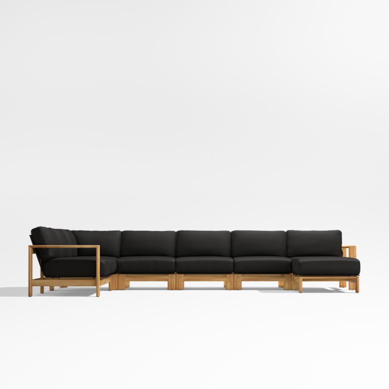 Anguilla Teak 6-Piece Right-Arm Chaise Outdoor Sectional Sofa with Black Cushions