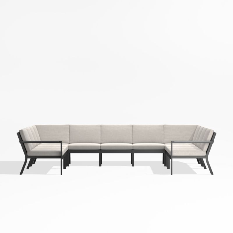 Alfresco Metal 7-Piece U-Shaped Outdoor Sectional Sofa with Silver Sunbrella® Cushions