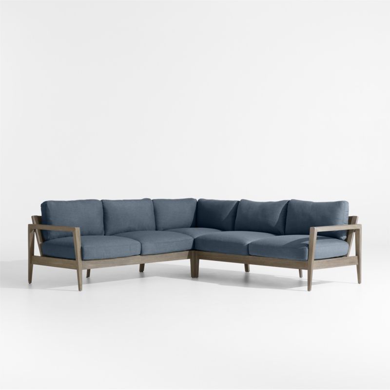 Andorra Weathered Grey Wood 3-Piece L-Shaped Outdoor Sectional Sofa with Harbor Blue Sunbrella ® Cushions