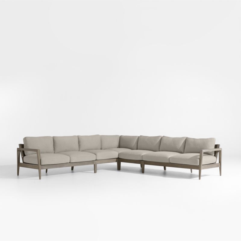 Andorra Weathered Grey Wood 5-Piece L-Shaped Outdoor Sectional Sofa with Haze Grey Sunbrella ® Cushions