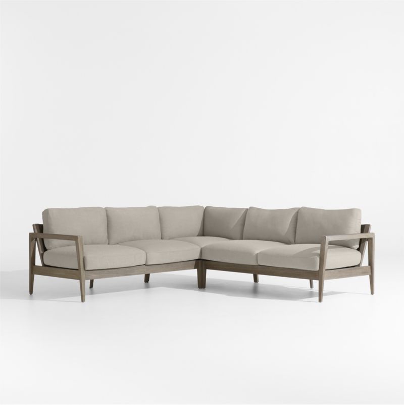 Andorra Weathered Grey Wood 3-Piece L-Shaped Outdoor Sectional Sofa Frame with Silver Sunbrella ® Cushions