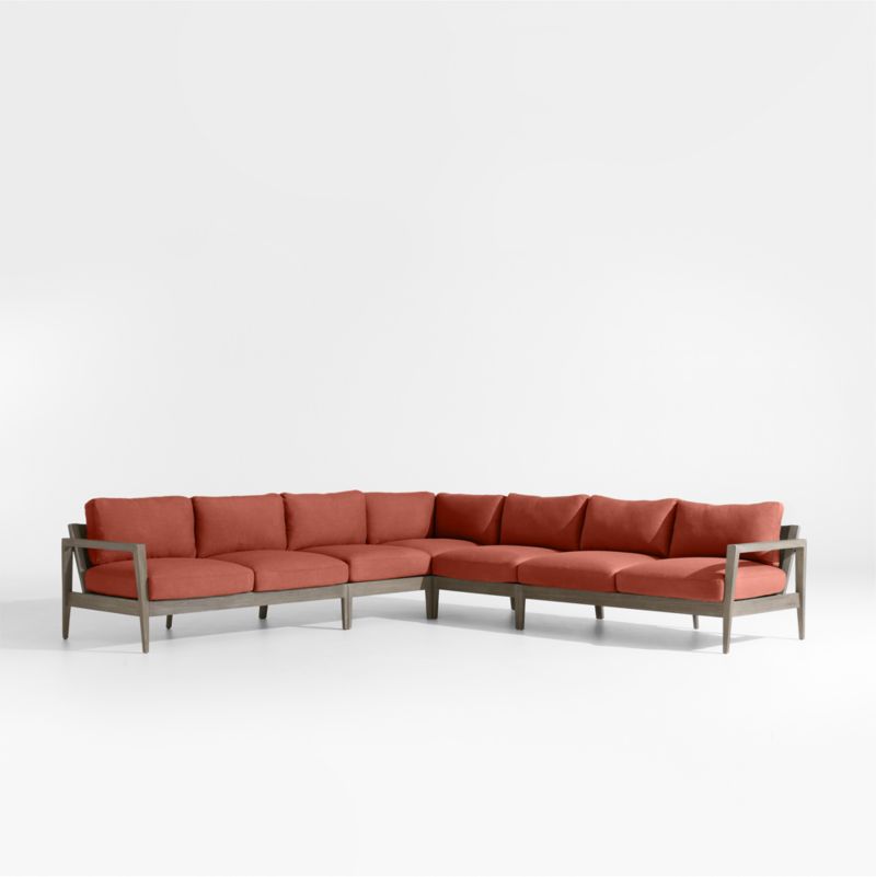 Andorra Weathered Grey Wood 5-Piece L-Shaped Outdoor Sectional Sofa with Henna Red Sunbrella ® Cushions