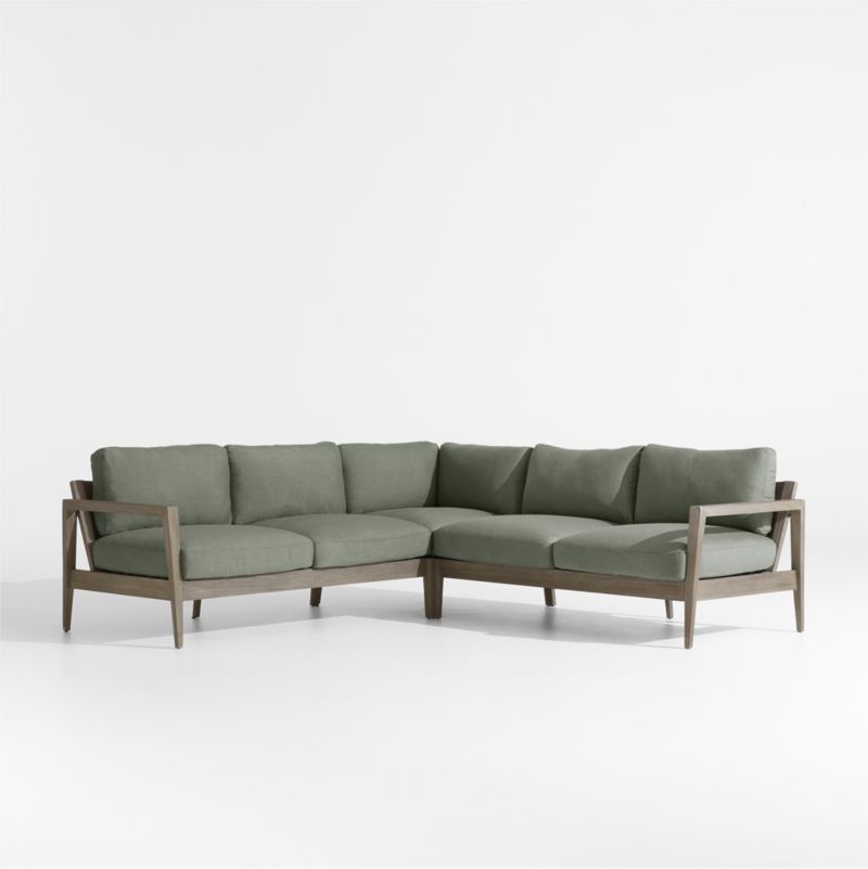 Andorra Weathered Grey Wood 3-Piece L-Shaped Outdoor Sectional Sofa with Sage Green Sunbrella ® Cushions