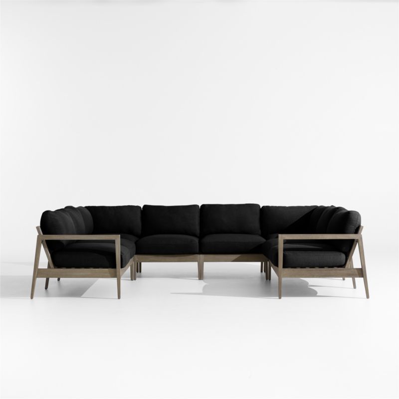 Andorra Weathered Grey Wood 6-Piece Petite U-Shaped Outdoor Sectional Sofa with Black Sunbrella ® Cushions