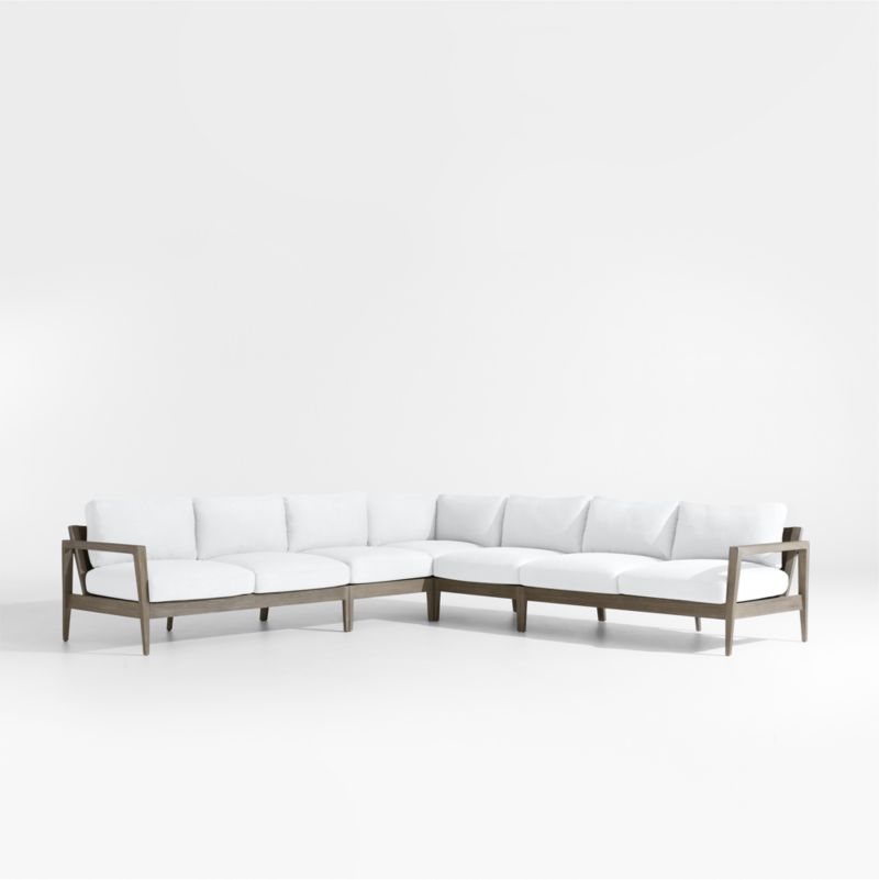 Andorra Weathered Grey Wood 5-Piece L-Shaped Outdoor Sectional Sofa with White Sunbrella ® Cushions