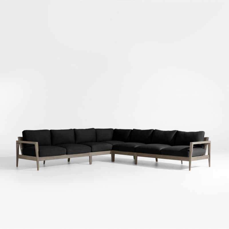 Andorra Weathered Grey Wood 5-Piece L-Shaped Outdoor Sectional Sofa with Black Sunbrella ® Cushions