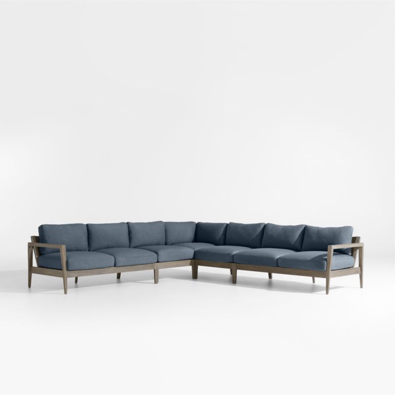 Andorra Weathered Grey Wood 5-Piece L-Shaped Outdoor Sectional Sofa with Harbor Blue Sunbrella ® Cushions