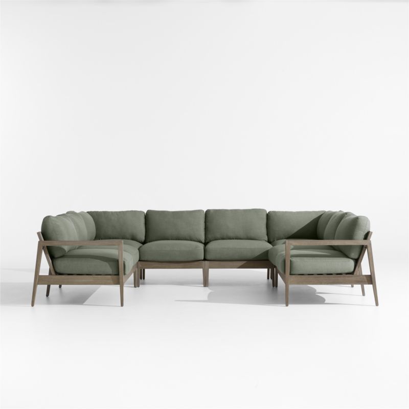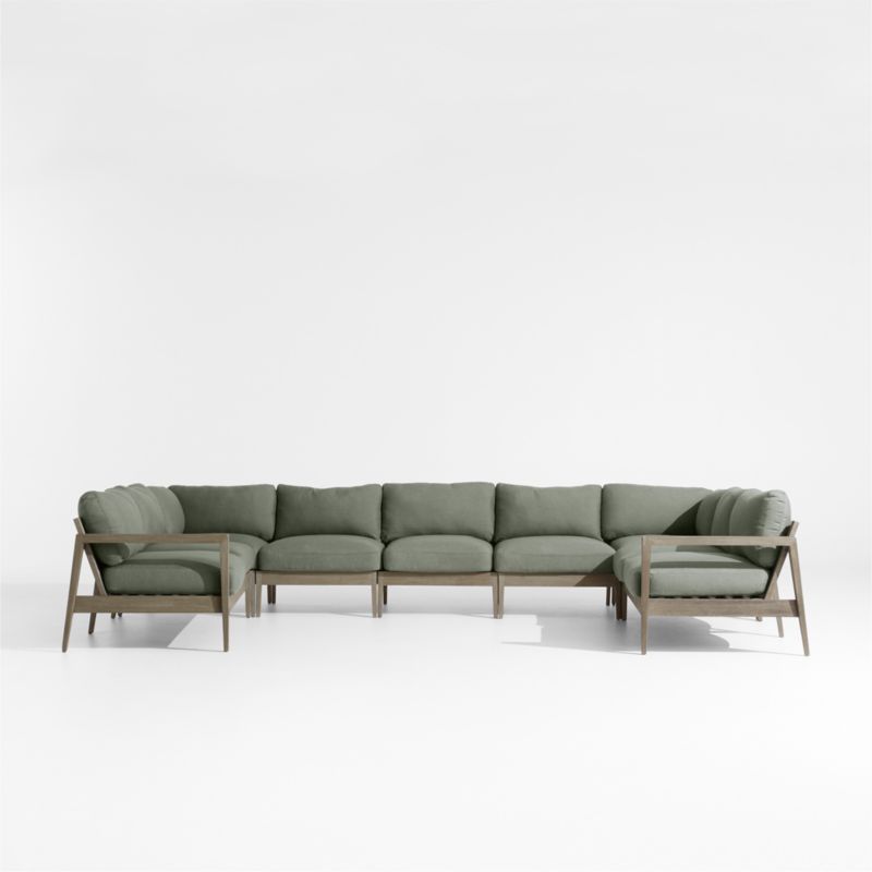Andorra Weathered Grey Wood 7-Piece U-Shaped Outdoor Sectional Sofa with Sage Green Sunbrella ® Cushions