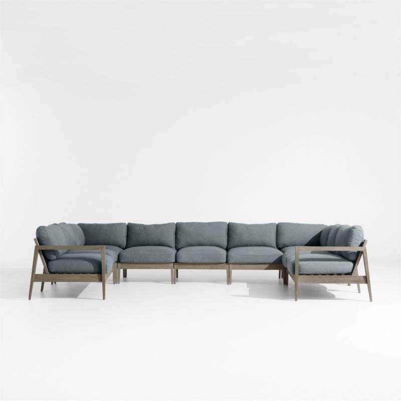 Andorra Weathered Grey Wood 7-Piece U-Shaped Outdoor Sectional Sofa with Haze Grey Sunbrella ® Cushions