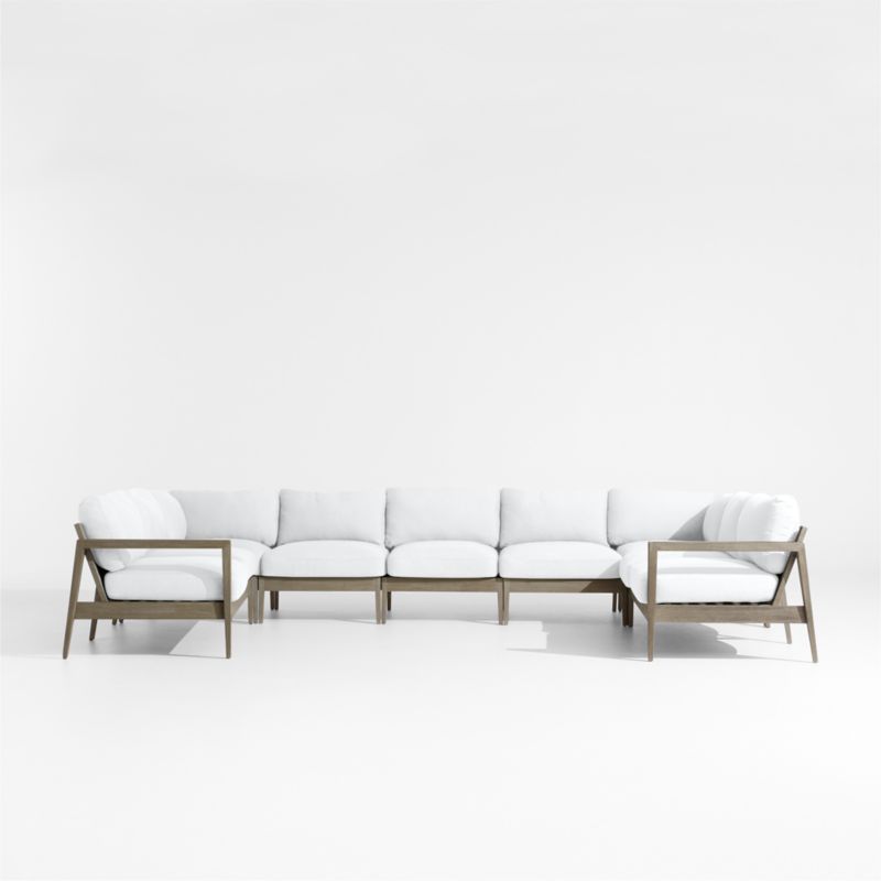 Andorra Weathered Grey Wood 7-Piece U-Shaped Outdoor Sectional Sofa with White Sunbrella ® Cushions