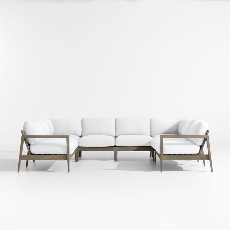 Andorra Weathered Grey Wood 6-Piece Petite U-Shaped Outdoor Sectional Sofa with White Sunbrella ® Cushions