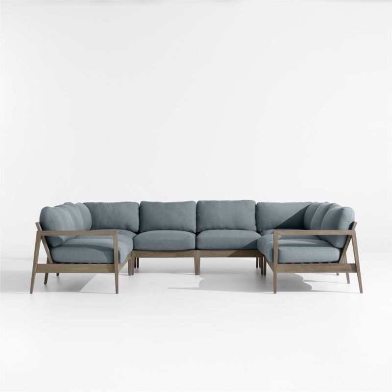 Andorra Weathered Grey Wood 6-Piece Petite U-Shaped Outdoor Sectional Sofa with Harbor Blue Sunbrella ® Cushions