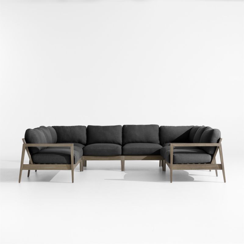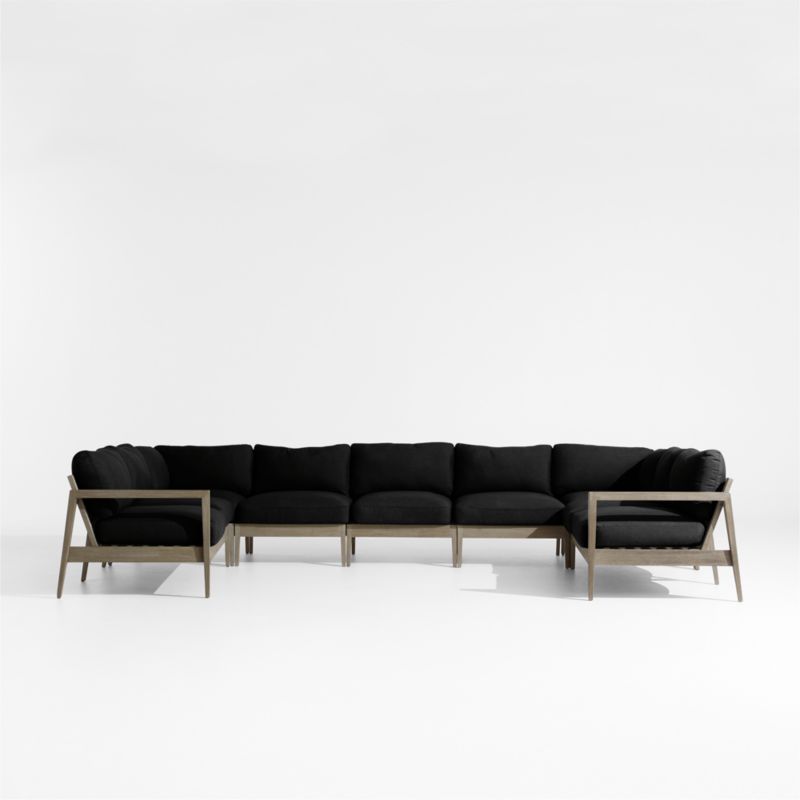 Andorra Weathered Grey Wood 7-Piece U-Shaped Outdoor Sectional Sofa with Canvas Black Sunbrella ® Cushions