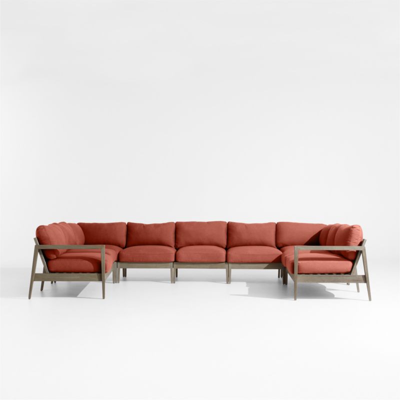 Andorra Weathered Grey Wood 7-Piece U-Shaped Outdoor Sectional Sofa with Henna Red Sunbrella ® Cushions